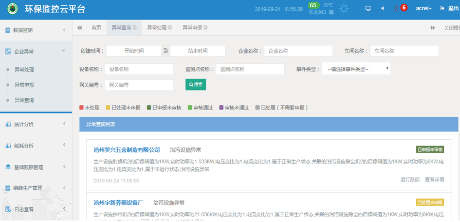 全面推進(jìn)打贏藍(lán)天保衛(wèi)戰(zhàn),打好碧水保衛(wèi)戰(zhàn),打勝凈土保衛(wèi)戰(zhàn),加快生態(tài)環(huán)境保護(hù)、建設(shè)美麗中國(guó)。環(huán)保用電監(jiān)管系統(tǒng)針對(duì)企業(yè)內(nèi)的環(huán)保設(shè)施、設(shè)備運(yùn)行狀況進(jìn)行檢測(cè),發(fā)揮環(huán)保設(shè)備的作用,提高監(jiān)察效率,并能夠動(dòng)態(tài)掌握治污治理執(zhí)行情況和異常預(yù)警提供支持,安科瑞憑借監(jiān)控領(lǐng)域里多年的技術(shù)力量和豐富經(jīng)驗(yàn),創(chuàng)新研發(fā)了AcrelCloud-3000環(huán)保設(shè)施用電監(jiān)管云平臺(tái),依托快速發(fā)展的物聯(lián)網(wǎng)技術(shù)、電力參數(shù)傳感技術(shù),實(shí)時(shí)采集企業(yè)總用電、工藝生產(chǎn)設(shè)備用電、污染治理設(shè)施設(shè)備用電等數(shù)據(jù),通過設(shè)施運(yùn)行停車分析、越限分析、停/限產(chǎn)分析、工藝關(guān)聯(lián)分析等,及時(shí)發(fā)現(xiàn)環(huán)保治理設(shè)施、設(shè)備等未開啟、空轉(zhuǎn)、減速、降頻以及異常關(guān)閉等未正常工作的情況;同時(shí),通過數(shù)據(jù)分析,還可以實(shí)時(shí)監(jiān)控限產(chǎn)和停產(chǎn)整治企業(yè)運(yùn)行狀態(tài)。應(yīng)用范圍: